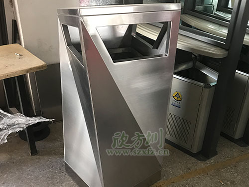 不锈钢果皮箱表面肌理工艺,是指通过锻打、刻划、打磨、腐蚀等工艺在不锈钢垃圾桶钣金加工表面制作出肌理效果。