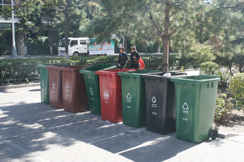 今年我市对25条城市主次道路进行建设,目前城市中轴线道路已全线贯通,城市面貌得到有效提升。为改善市容市貌,避免老式果皮箱流出的油渍污染城市道路,环卫处首先对红旗路、育才路、东解放路、红军路、二马路,也就是从迎宾门至二马路这条城市中轴线道路的垃圾箱进行了更新,引进600个分类果皮箱,分为可回收利用垃圾、不可回收利用垃圾、有害垃圾和其它垃圾四类,根据需要每4个、6个或8个一组,提供给市民投放垃圾,每组果皮箱有专人保洁,专门车辆定时将桶内垃圾收走。
