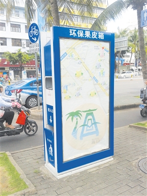 近日,海口悄然出现一种设计新颖别致、功能齐全、方便实用的环保果皮箱,成为街头一大亮点。
